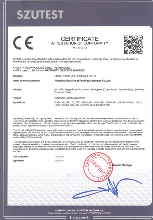 Wenzhou GaoShang Packaging Machinery Co, Ltd. was established in 2010, located in the historic Chinese,“Zhejiang city", the famous “Wenzhou model”birthplace, China's packaging machinery and pharmaceutical machinery production base- Zhejiang Ruian. Is a professional engaged in the automatic cartoning machine research and development, manufacturing, sales and after-sales service in one of the science and technology joint-stock enterprises, enterprises have a large number of mechanical design research and development, processing and automatic cartoning machine engineering elite, with strong The technical strength, reliable product quality, good after- sales service.